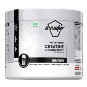 - Avvatar Creatine Monohydrate (100g, Unflavoured) delivers pure, high-quality creatine monohydrate to enhance strength, power, and performance. Ideal for athletes and fitness enthusiasts, it supports muscle recovery and growth with guaranteed purity and potency.