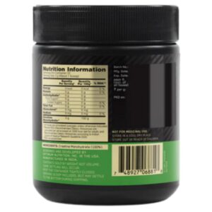 - Muscle Size, Strength & Performance. 3 Grams of 100% Creatine Monohydrate per Serving. Helps Support ATP Recycling Zero Calories & Zero Carbohydrates. Banned Substance Tested.