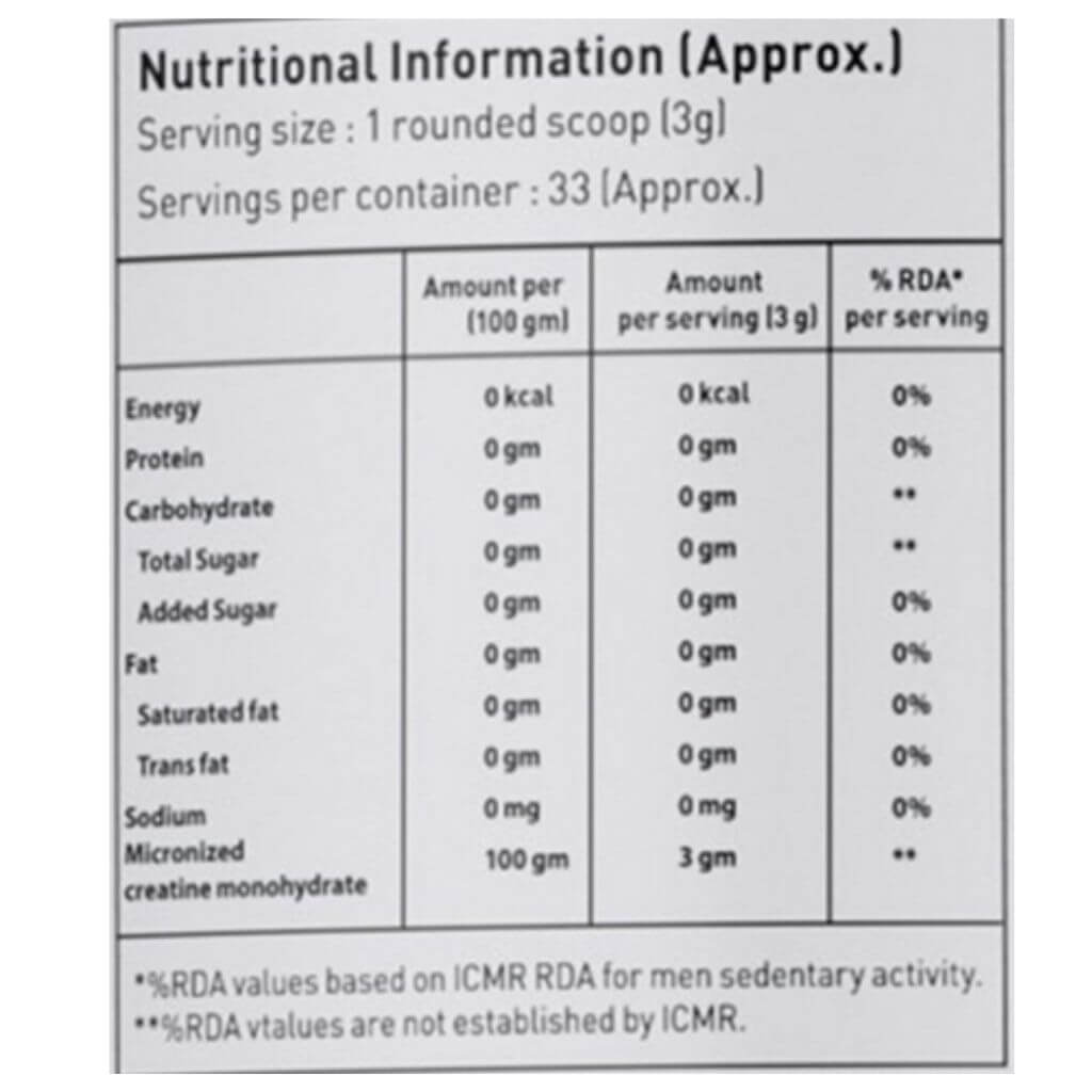• Convenient 100g Pack: Perfect for beginners trying creatine supplementation or for those who prefer smaller, travel-friendly quantities.